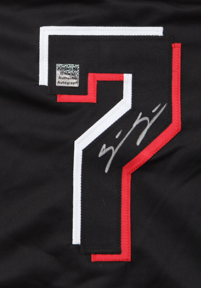 Custom jersey with everything sewn on, size XL. Hand-signed by Spencer Steer.