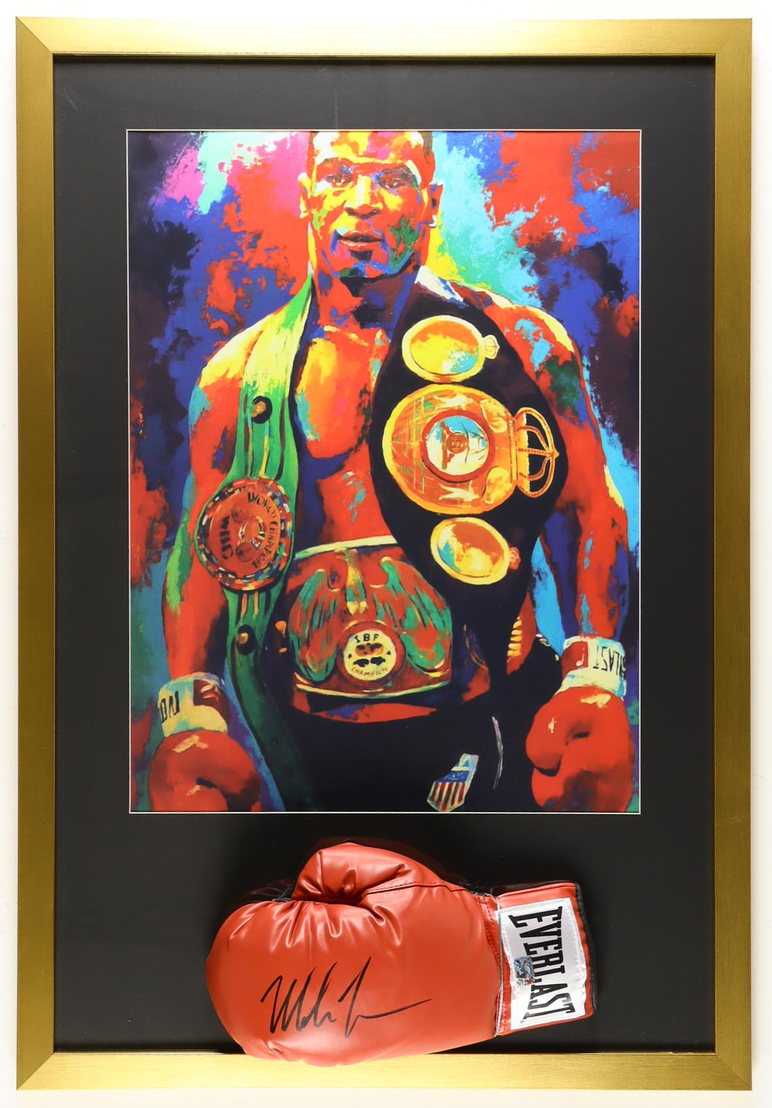 Custom frame measures approximately 24" x 35" in size and features an Everlast boxing glove that has been hand-signed by Mike Tyson (HOF) as well as an art print of Tyson.