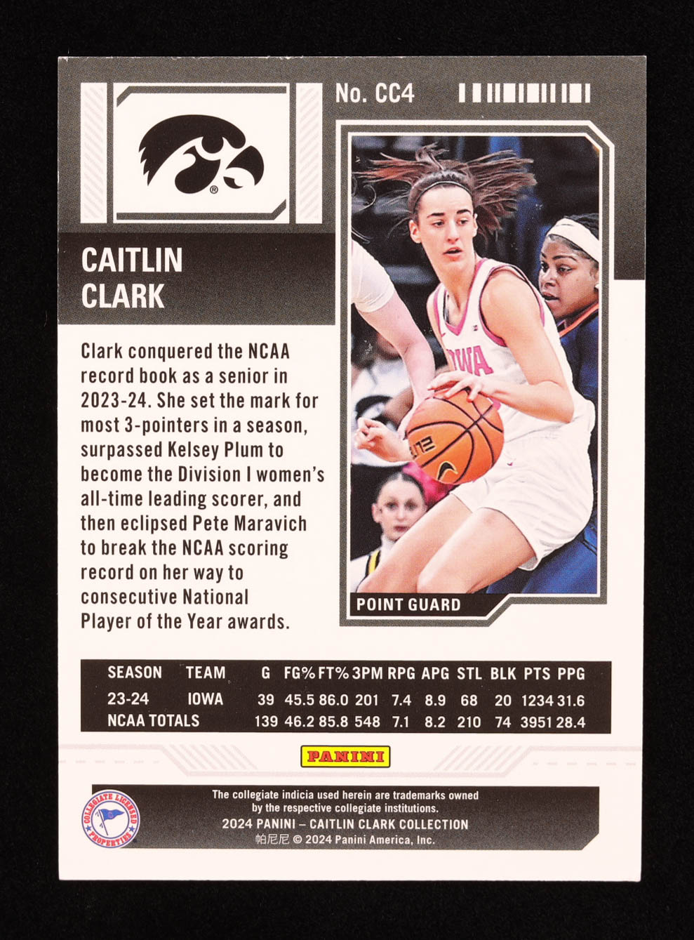 Caitlin Clark 2024 Panini Caitlin Clark Collection College Contenders #CC4 RC