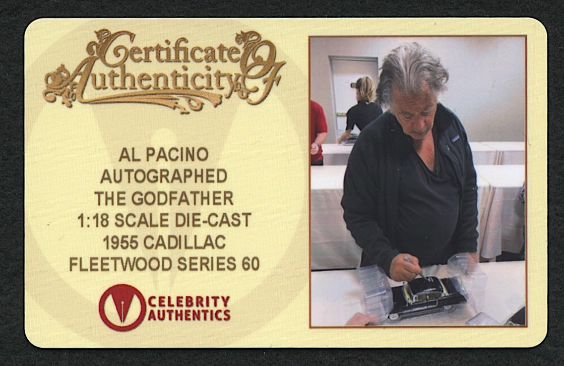 Al Pacino Signed "The Godfather" 1955 Cadillac Fleetwood 1:18 Scale Diecast Car (Celebrity Authentics)