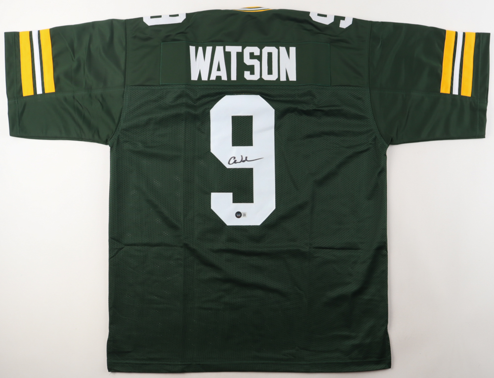 Custom jersey. Everything is sewn on, size XL. Hand-signed by Christian Watson.
