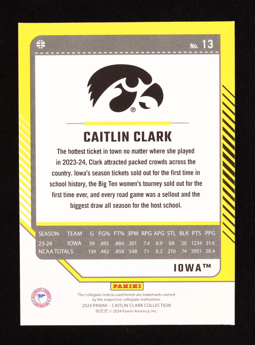 Caitlin Clark 2024 Panini Caitlin Clark Collection Donruss #13 RC