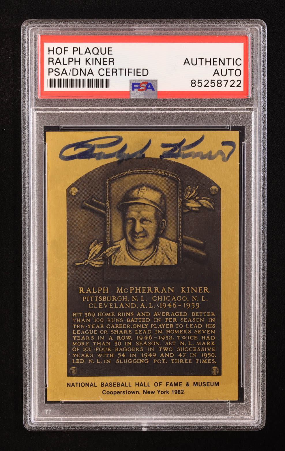 Ralph Kiner Signed Hall of Fame Metal Plaque (PSA)