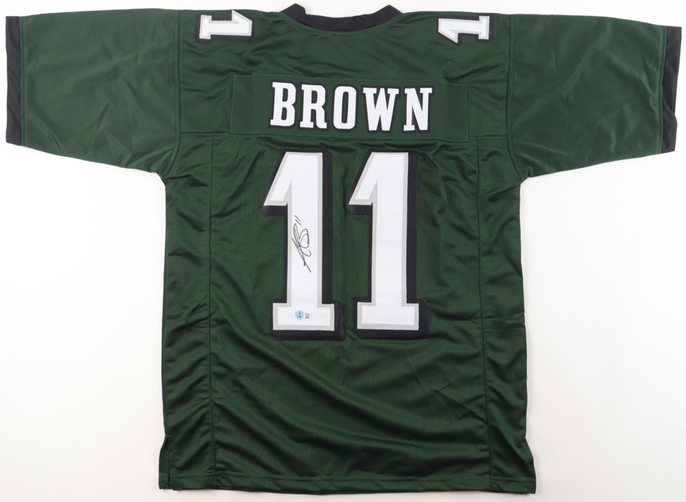 Custom jersey. Everything is sewn on, size L. Hand-signed by A. J. Brown.