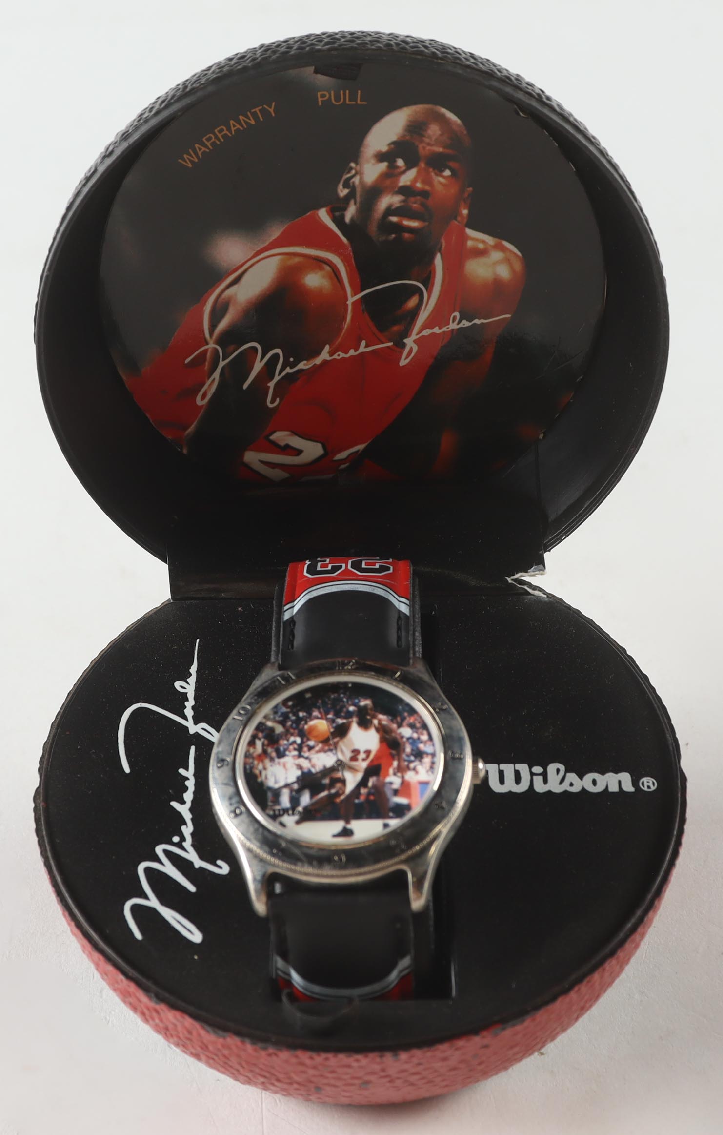 Wilson Commemorative Michael Jordan watch with basketball display case. Please note signature is facsimile.