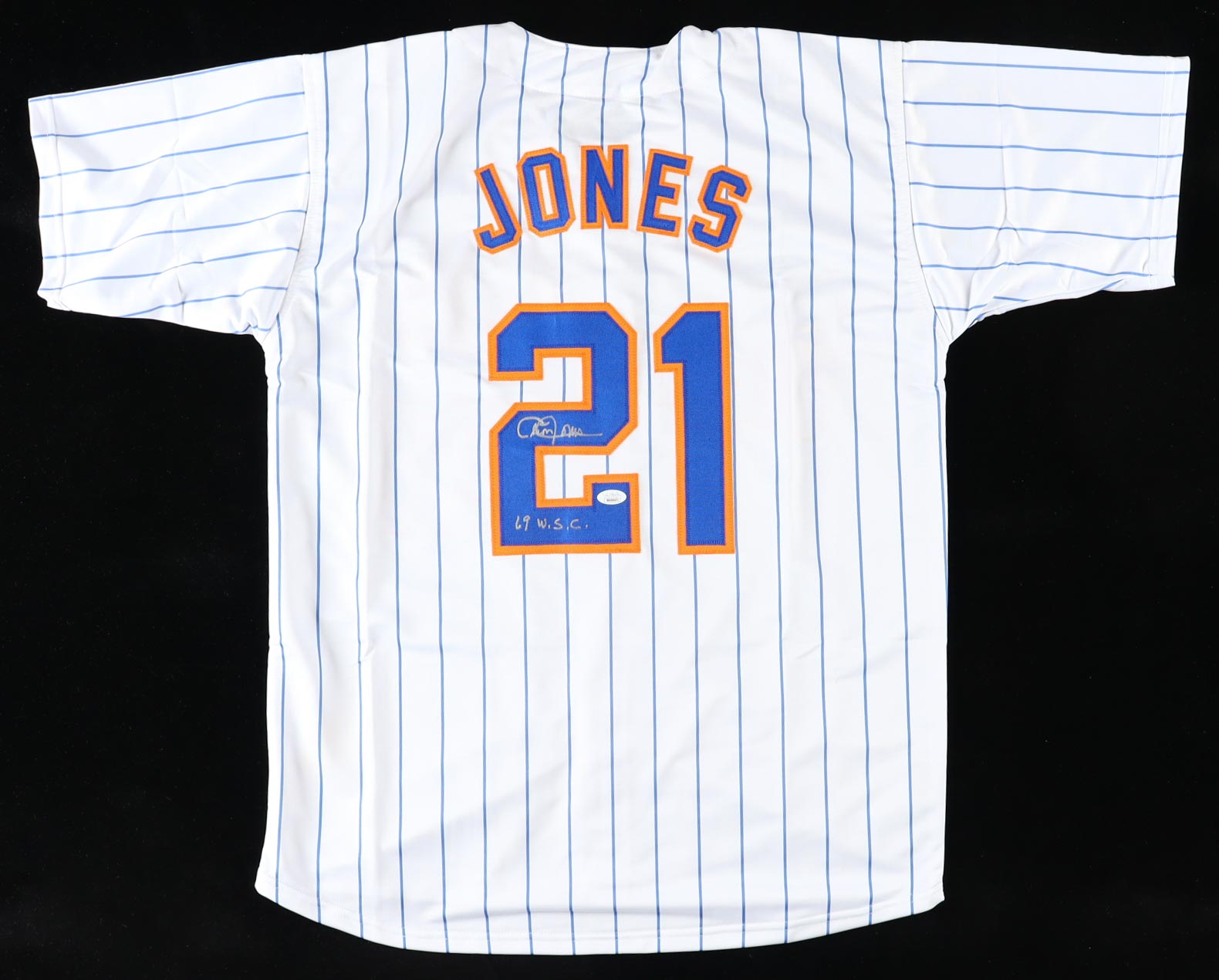 Custom jersey. Everything is sewn on, size XL. Hand-signed and inscribed by Cleon Jones.