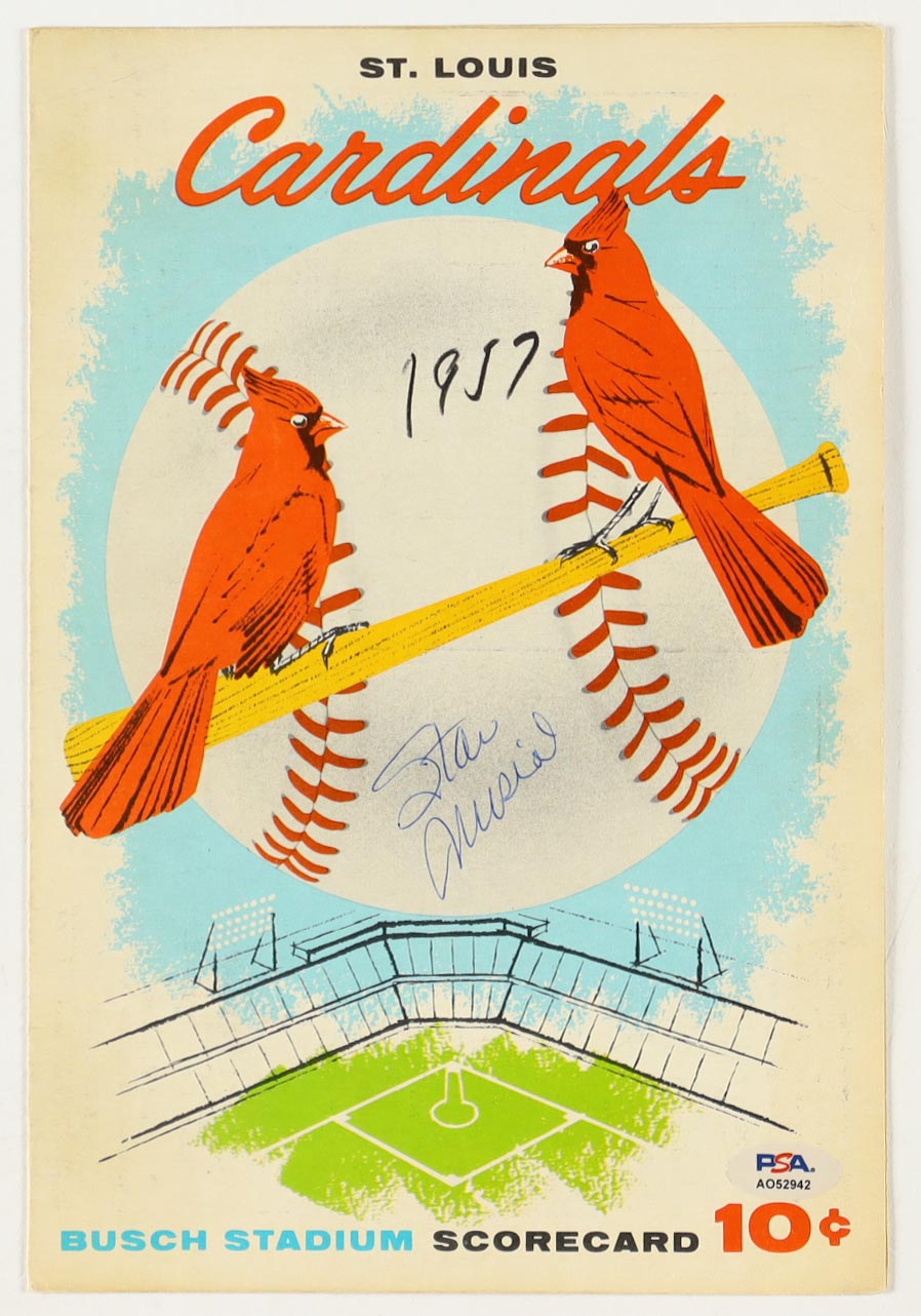 Stan Musial Signed 1957 Cardinals Souvenir Scorecard (PSA)