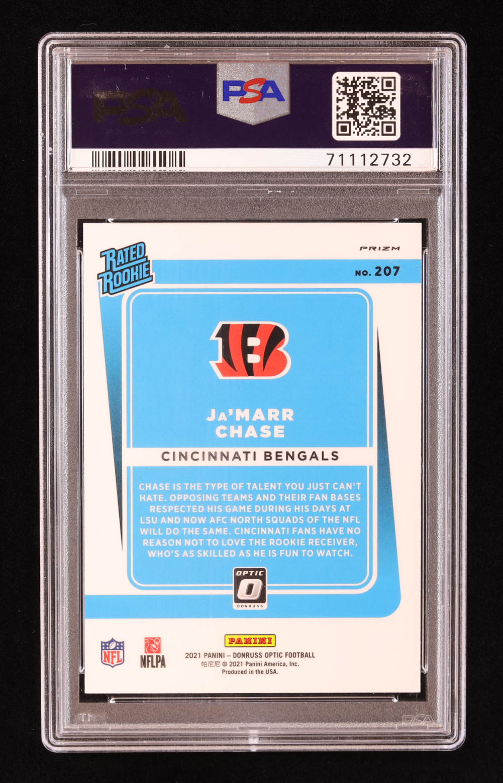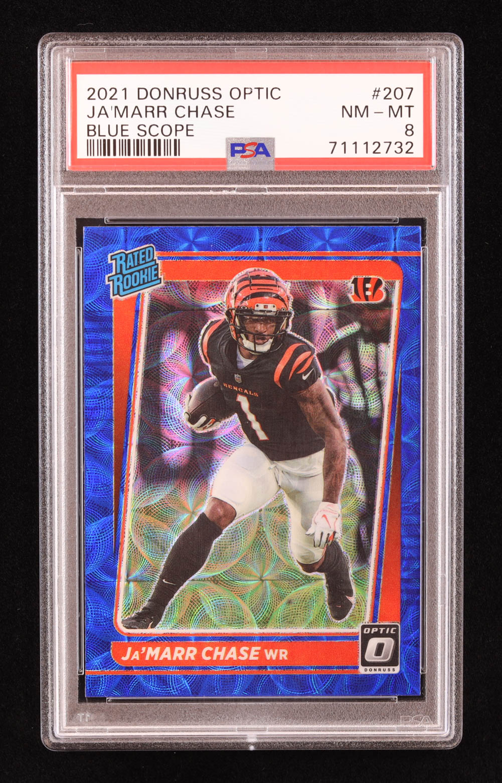 Ja'Marr Chase 2021 Donruss Optic Blue Scope #207 RR RC (PSA 8)