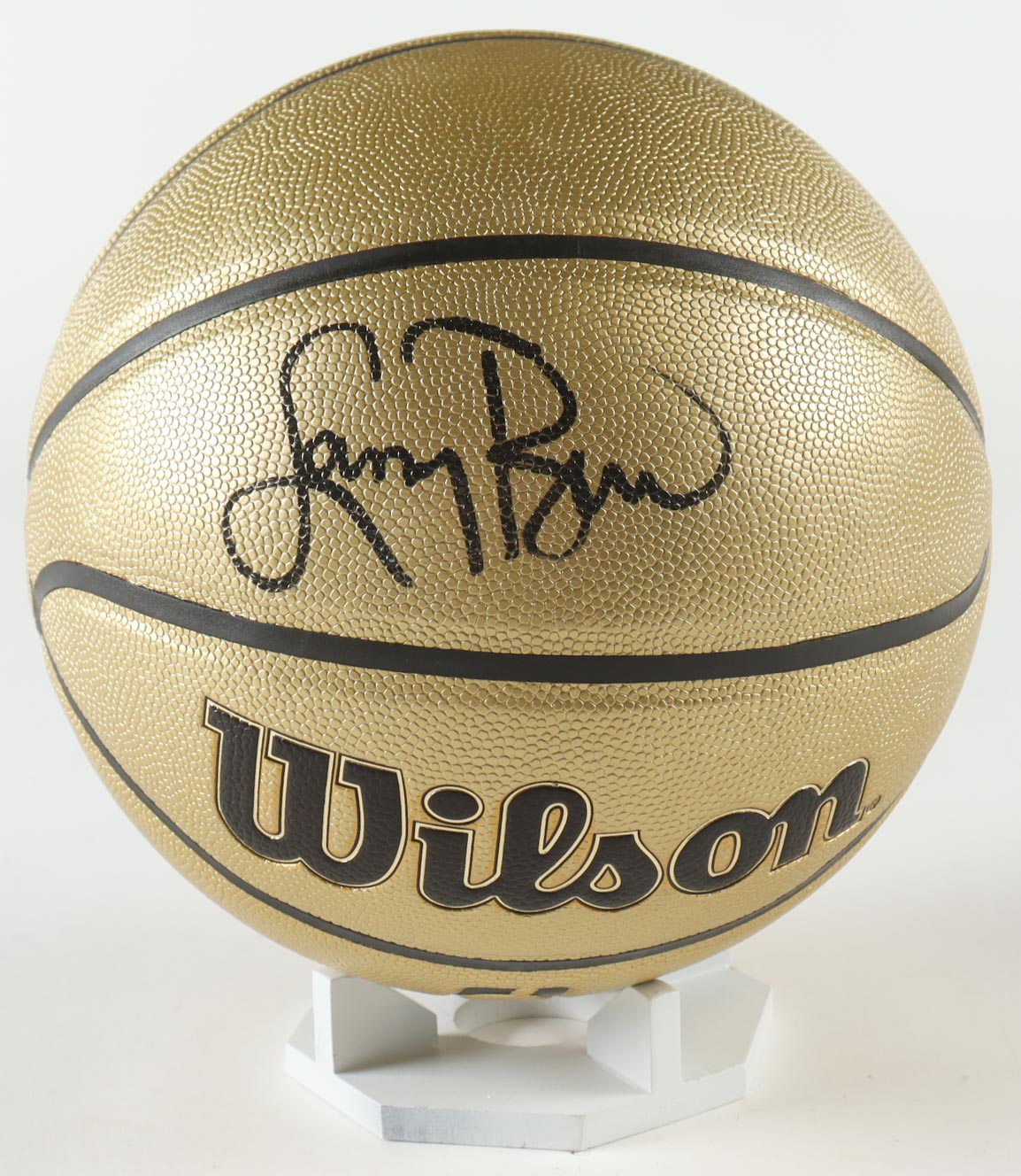 Wilson Gold Edition NBA basketball. Hand-signed by Larry Bird (HOF). The acrylic display stand is included as shown.