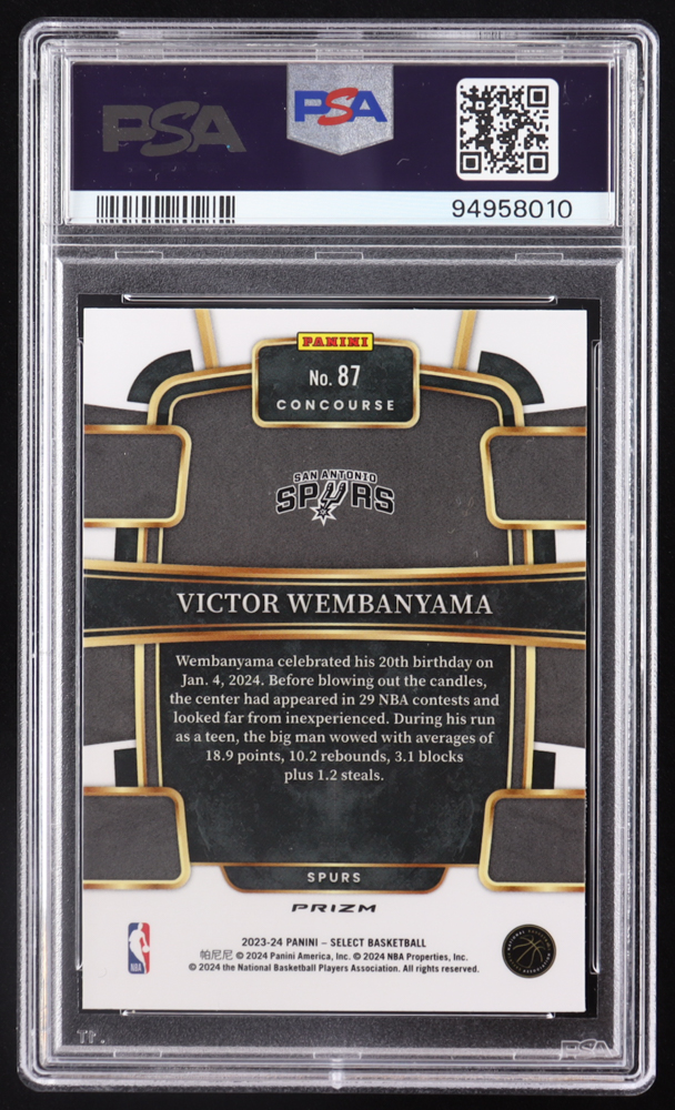 Victor Wembanyama 2023-24 Select Orange Flash #87 RC (PSA 10)