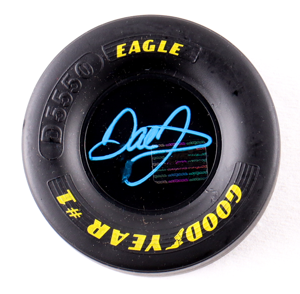 Mini tire has been hand-signed by Dale Earnhardt Jr. (HOF). Please note, the signature has been smudged.