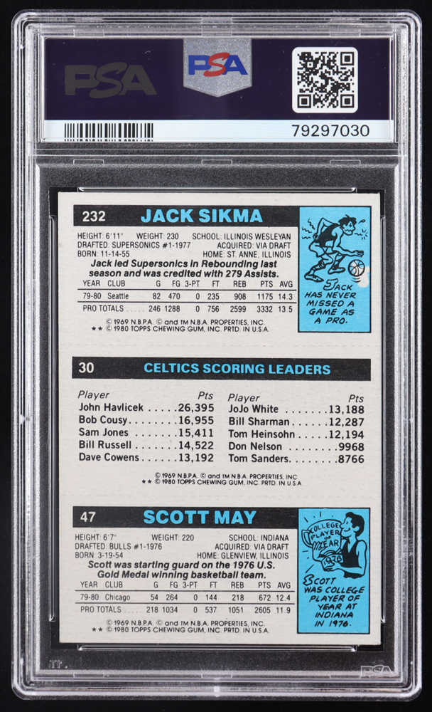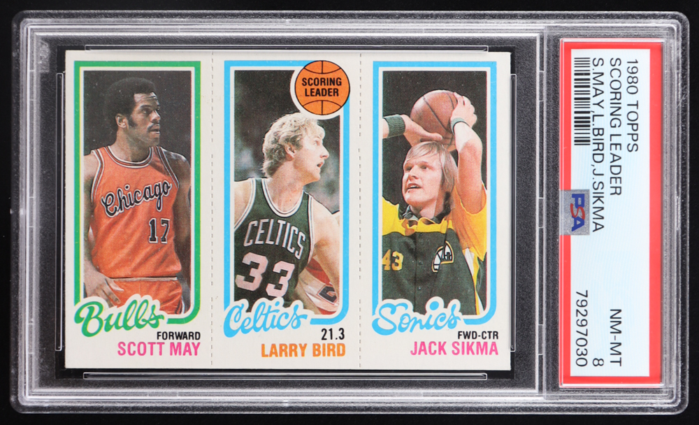 47 Scott May / 30 Larry Bird TL / 232 Jack Sikma 1980-81 Topps #98 (PSA 8)