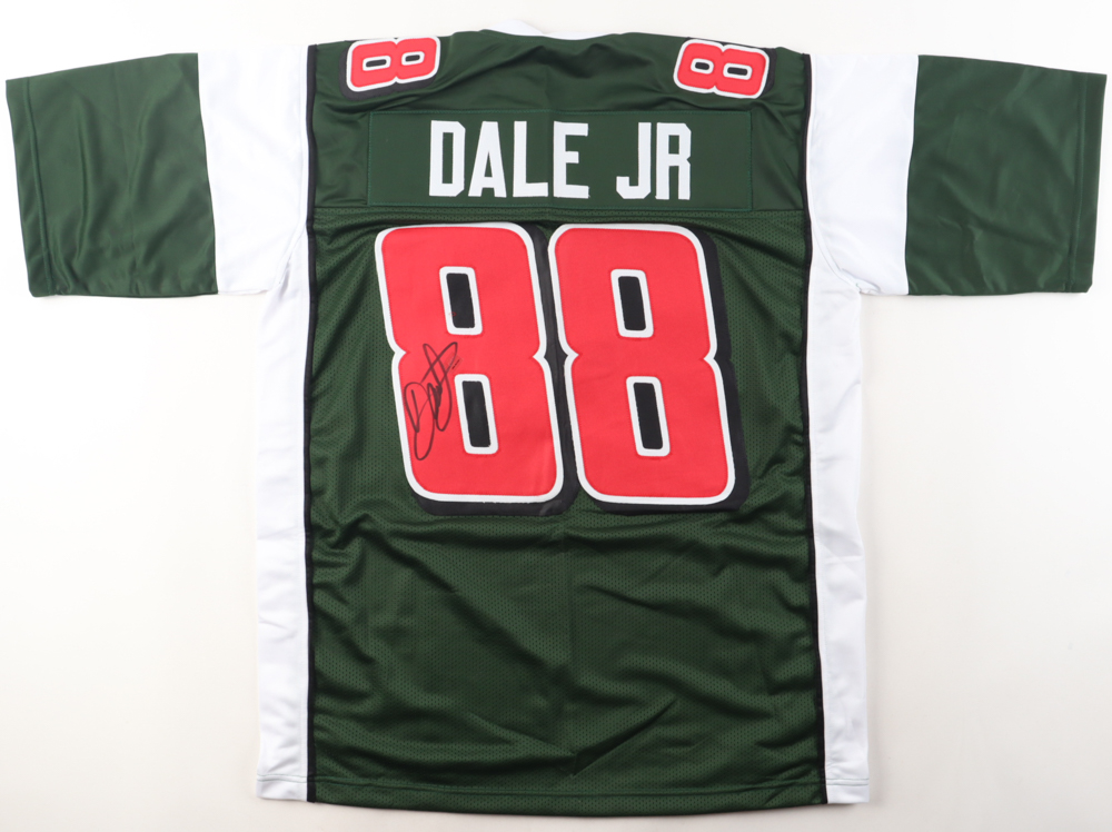 Custom jersey. Everything is sewn on, size XL. Hand-signed by Dale Earnhardt Jr.