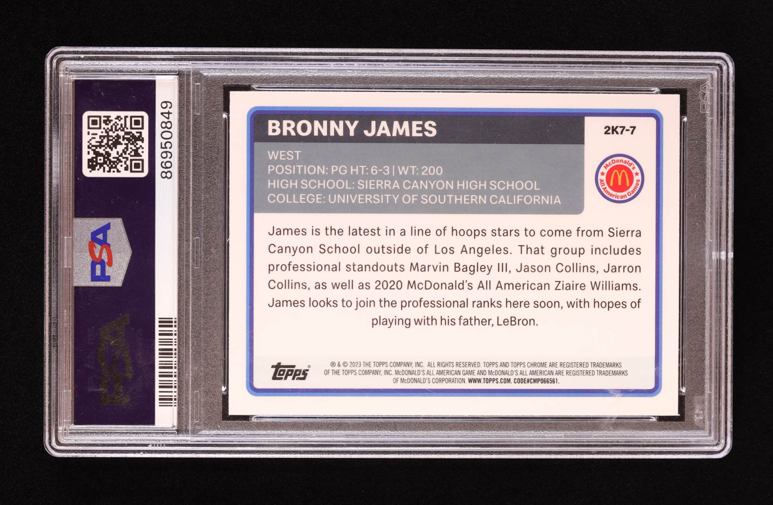 Bronny James 2023 Topps Chrome '07 McDonald's All American #2K77 RC (PSA 9)