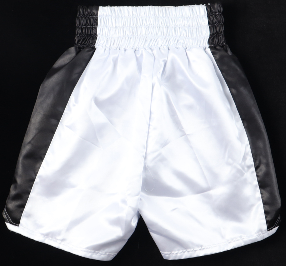 Boxing trunks have everything custom stitched on. The shorts have been hand-signed by Ryan Garcia. Please note, there is a stray ink mark below the signature.