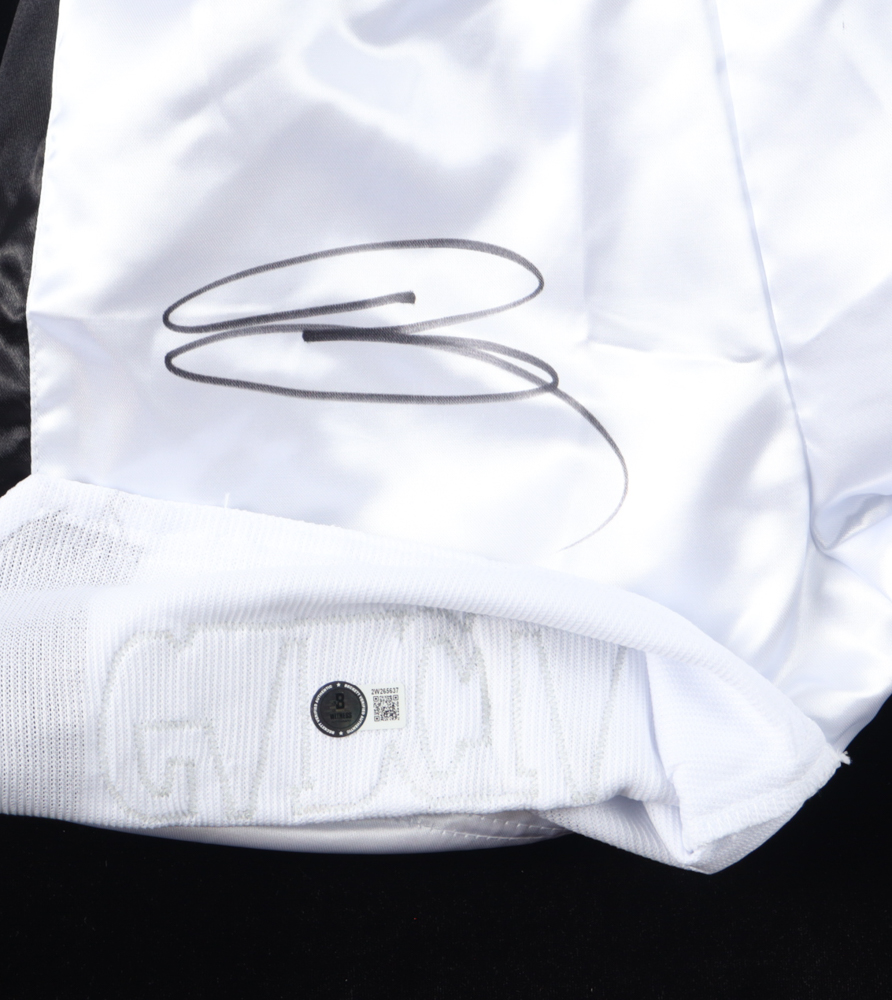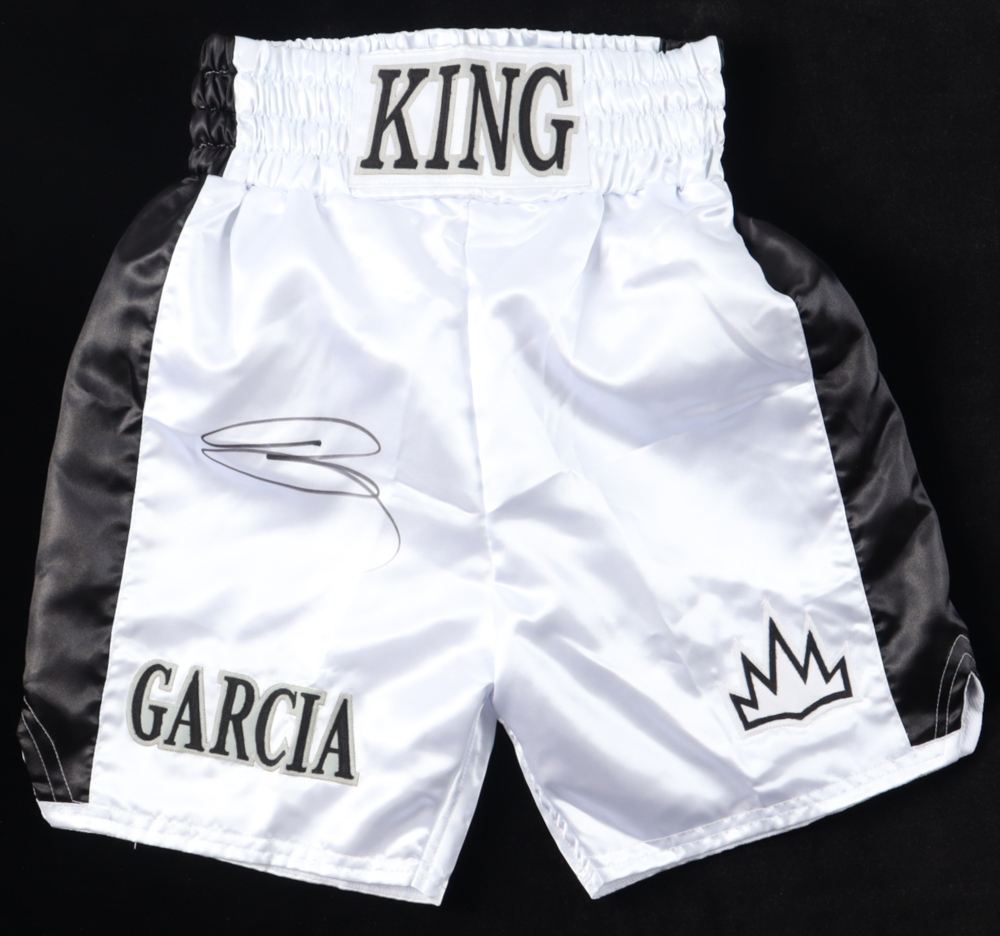 Boxing trunks have everything custom stitched on. The shorts have been hand-signed by Ryan Garcia.