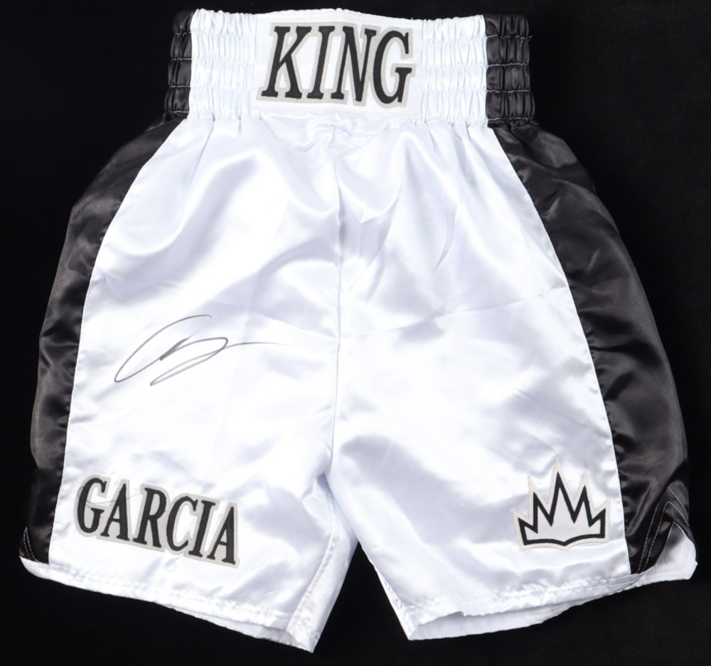 Boxing trunks have everything custom stitched on. The shorts have been hand-signed by Ryan Garcia.