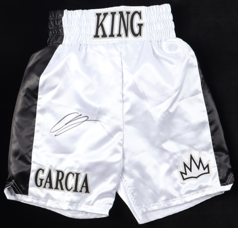 Boxing trunks have everything custom stitched on. The shorts have been hand-signed by Ryan Garcia.