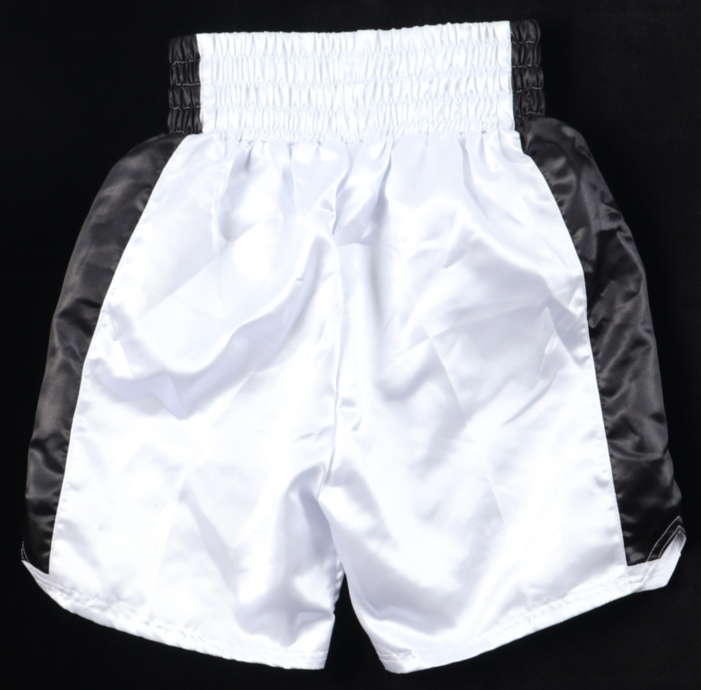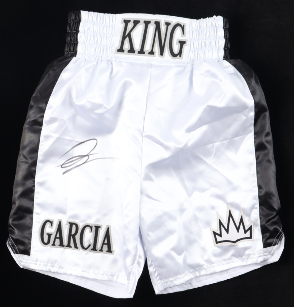 Boxing trunks have everything custom stitched on. The shorts have been hand-signed by Ryan Garcia.