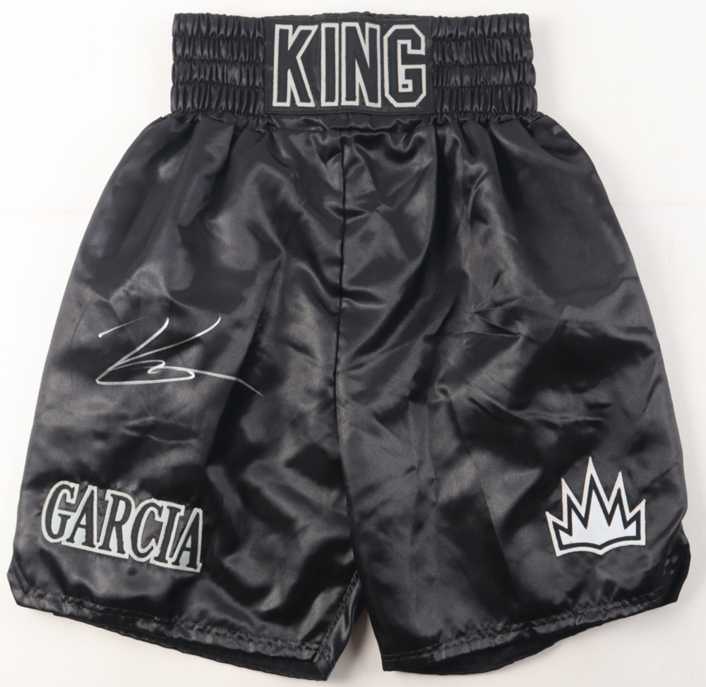 Boxing trunks have everything custom stitched on. The shorts have been hand-signed by Ryan Garcia.