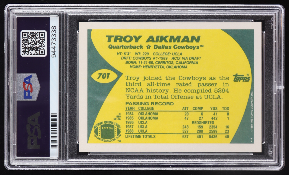 Troy Aikman 1989 Topps Traded #70T RC (PSA 9)