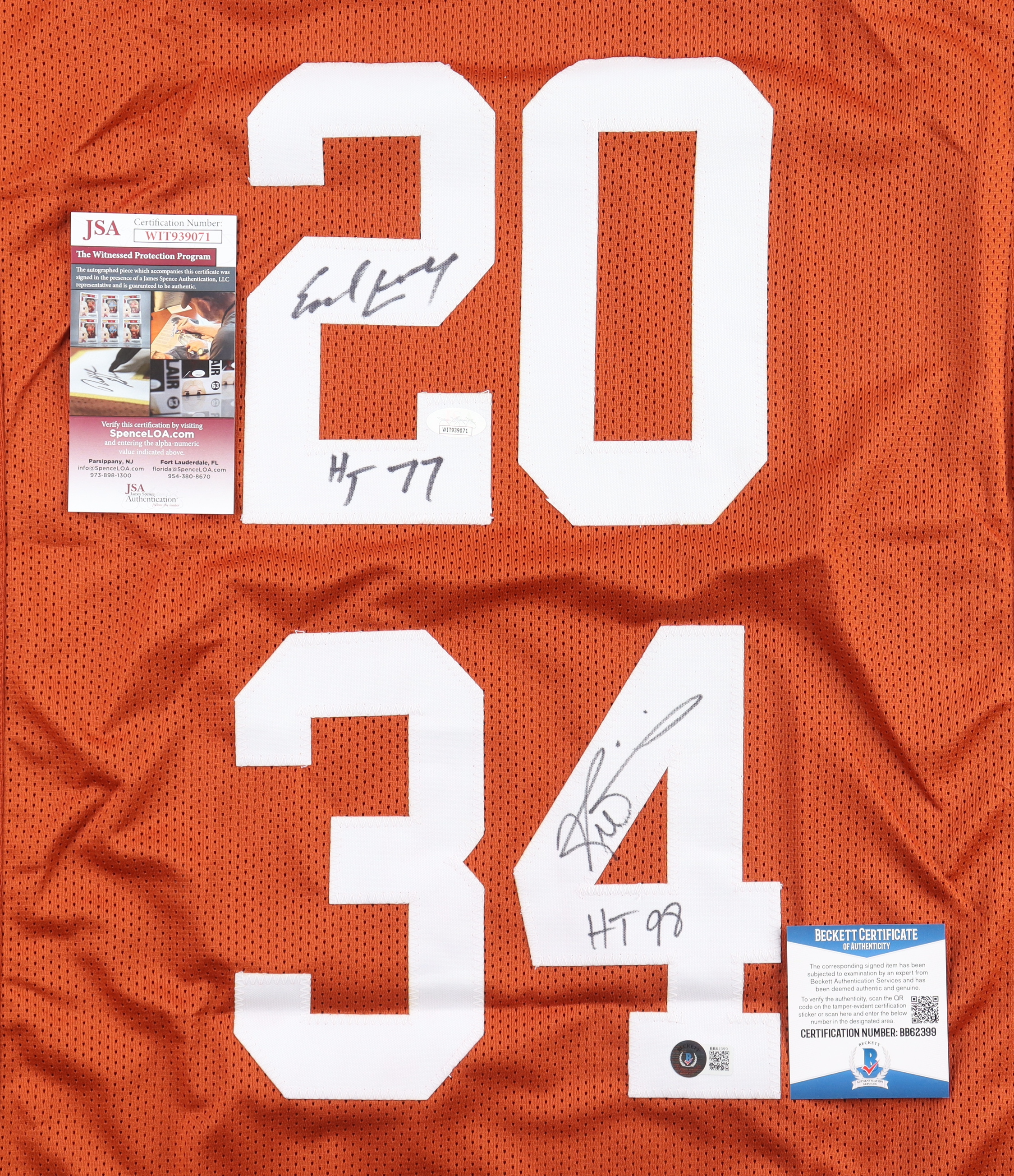 Ricky Williams & Earl Campbell Signed Jersey Inscribed "HT 77" & "HT 98" (JSA & Beckett)