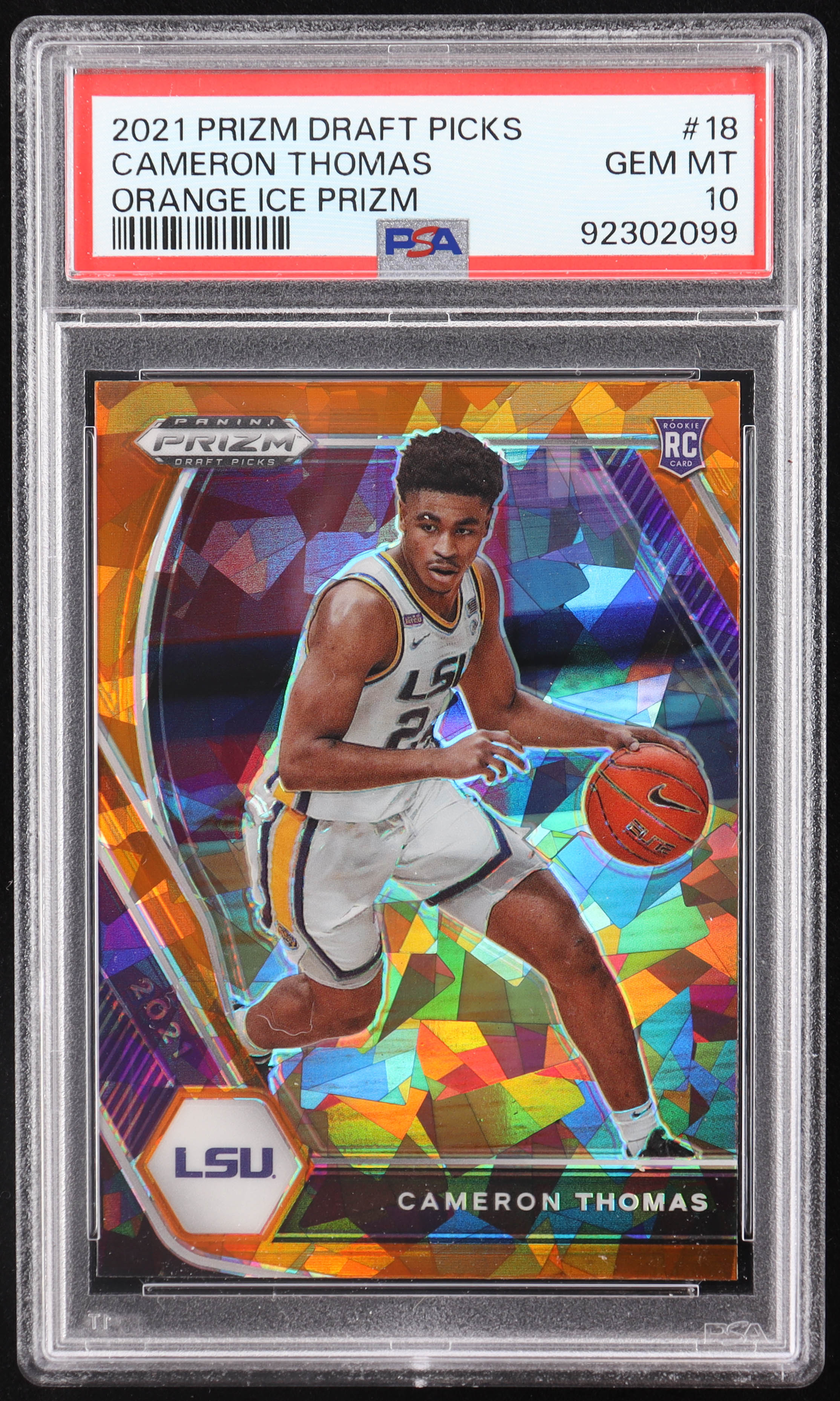 Cameron Thomas 2021-22 Panini Prizm Draft Picks Prizms Orange Ice #18 RC (PSA 10)