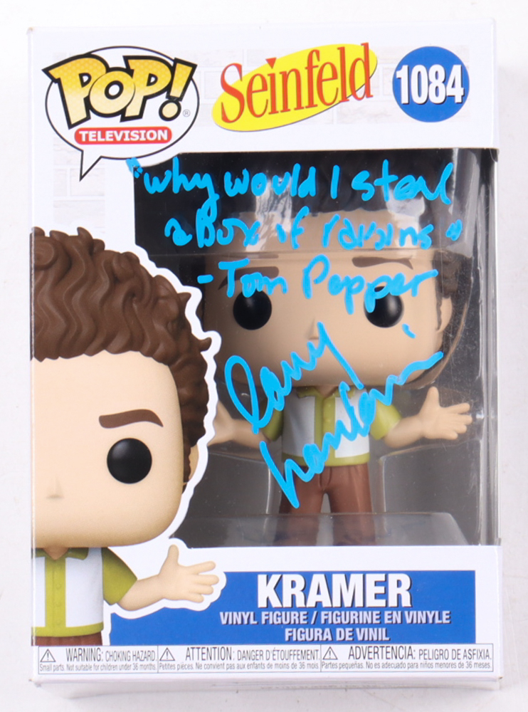 Larry Hankin Signed "Seinfeld" #1084 Kramer Funko Pop! Television Vinyl Figure Inscribed "Why would I steal a box of raisins" & "Tom Pepper" (Beckett)