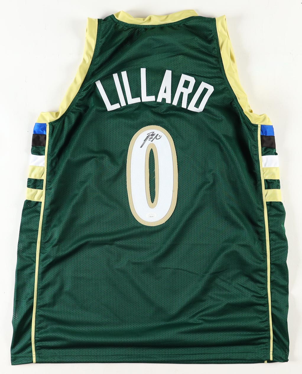 Custom jersey with everything pressed on, size XL. Hand-signed by Damian Lillard.