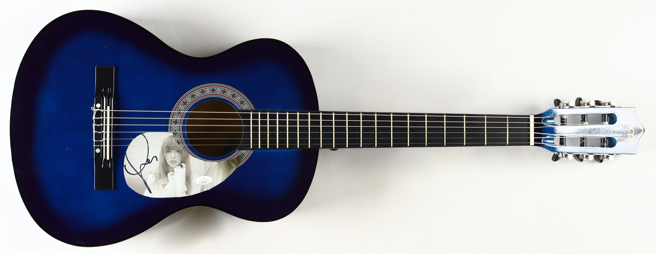BCP Acoustic guitar measures approximately 38" in length and has been hand-signed on a CD cover that has been repurposed as a pick-guard by Taylor Swift.