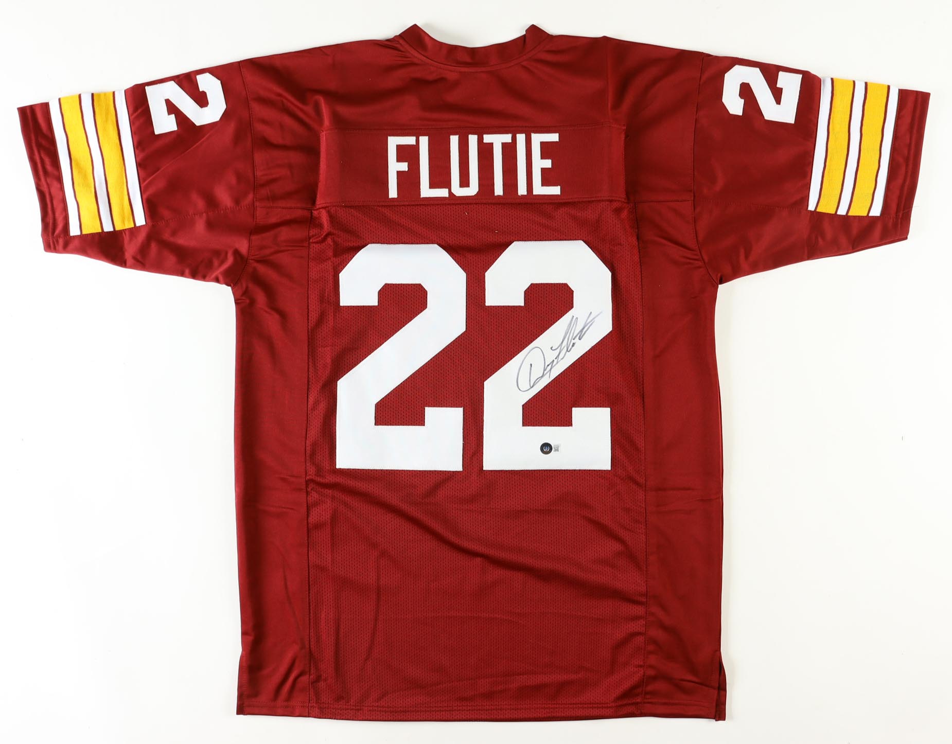 Custom jersey. Everything is sewn on, size XL. Hand-signed by Doug Flutie.