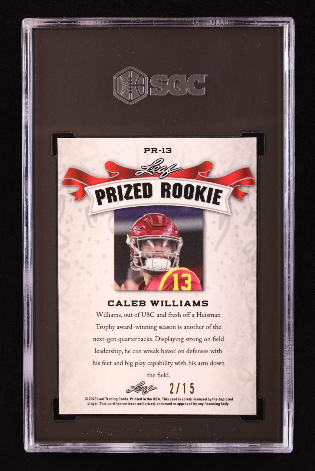 Caleb Williams 2023 Leaf Metal Special Release Prized Rookie Mojo Purple #PR2013 RC #02/15 (SGC 9.5)