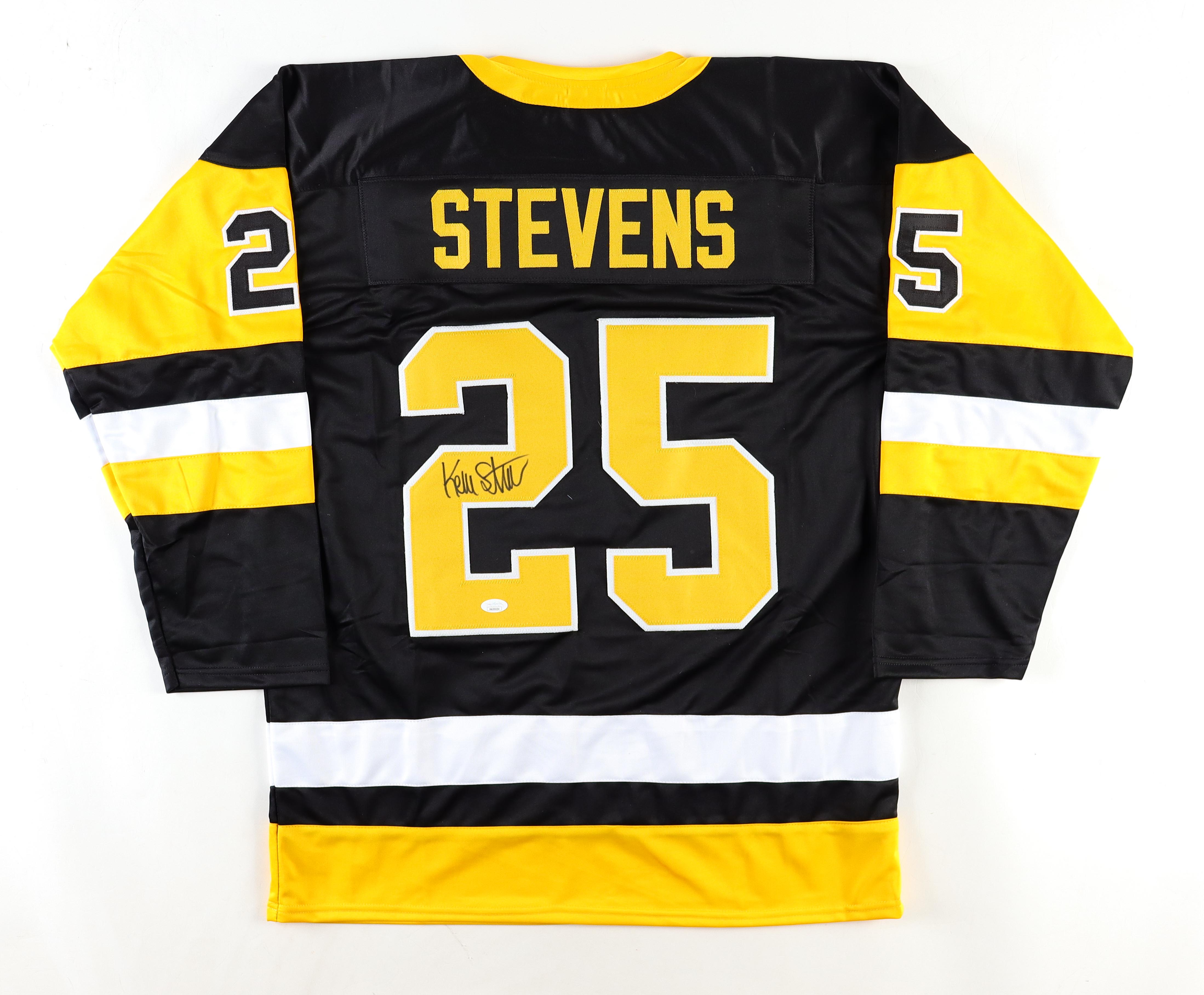 Custom jersey. Everything is sewn on, size XL. Hand-signed by Kevin Stevens.