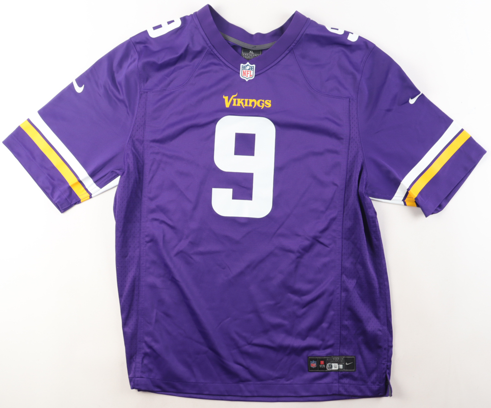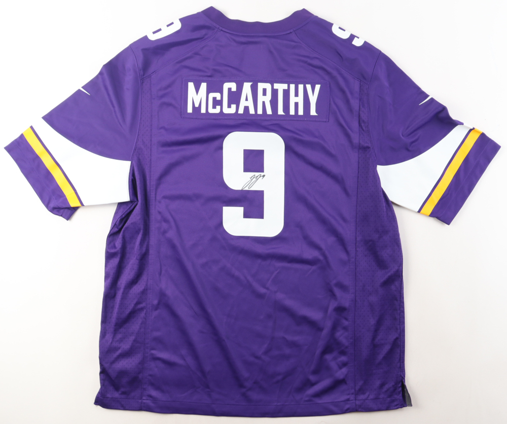 Nike jersey with everything printed on, size XL. Hand-signed by J.J. McCarthy (Minnesota Vikings).