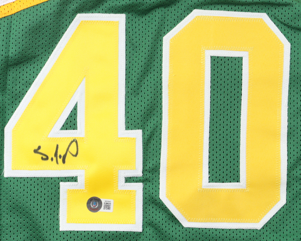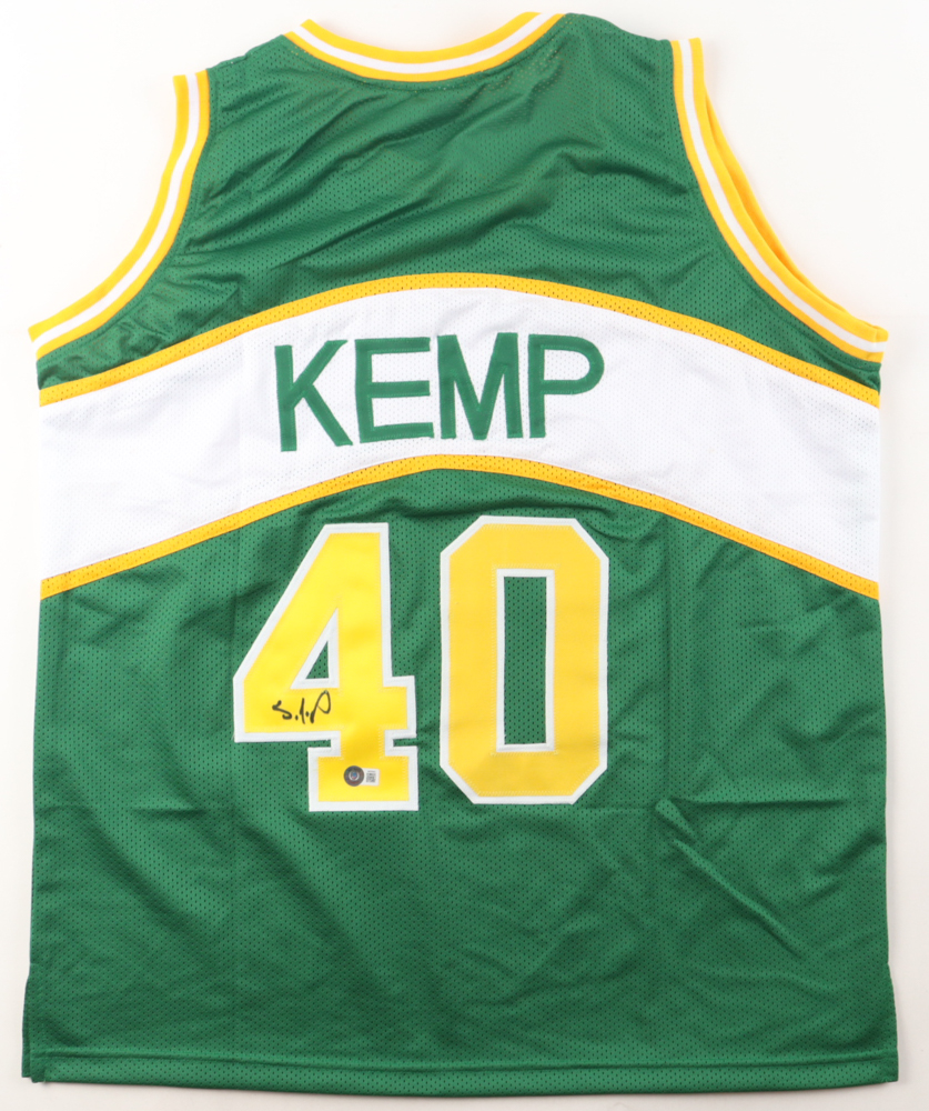 Custom jersey. Everything sewn on, size XL. Hand-signed by Shawn Kemp.