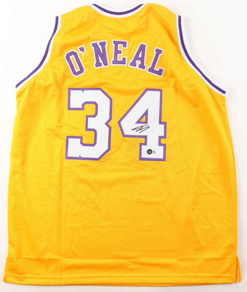 Custom jersey. Everything is sewn on, size XL. Hand-signed by Shaquille O'Neal (HOF). Please note, the signature has bled.