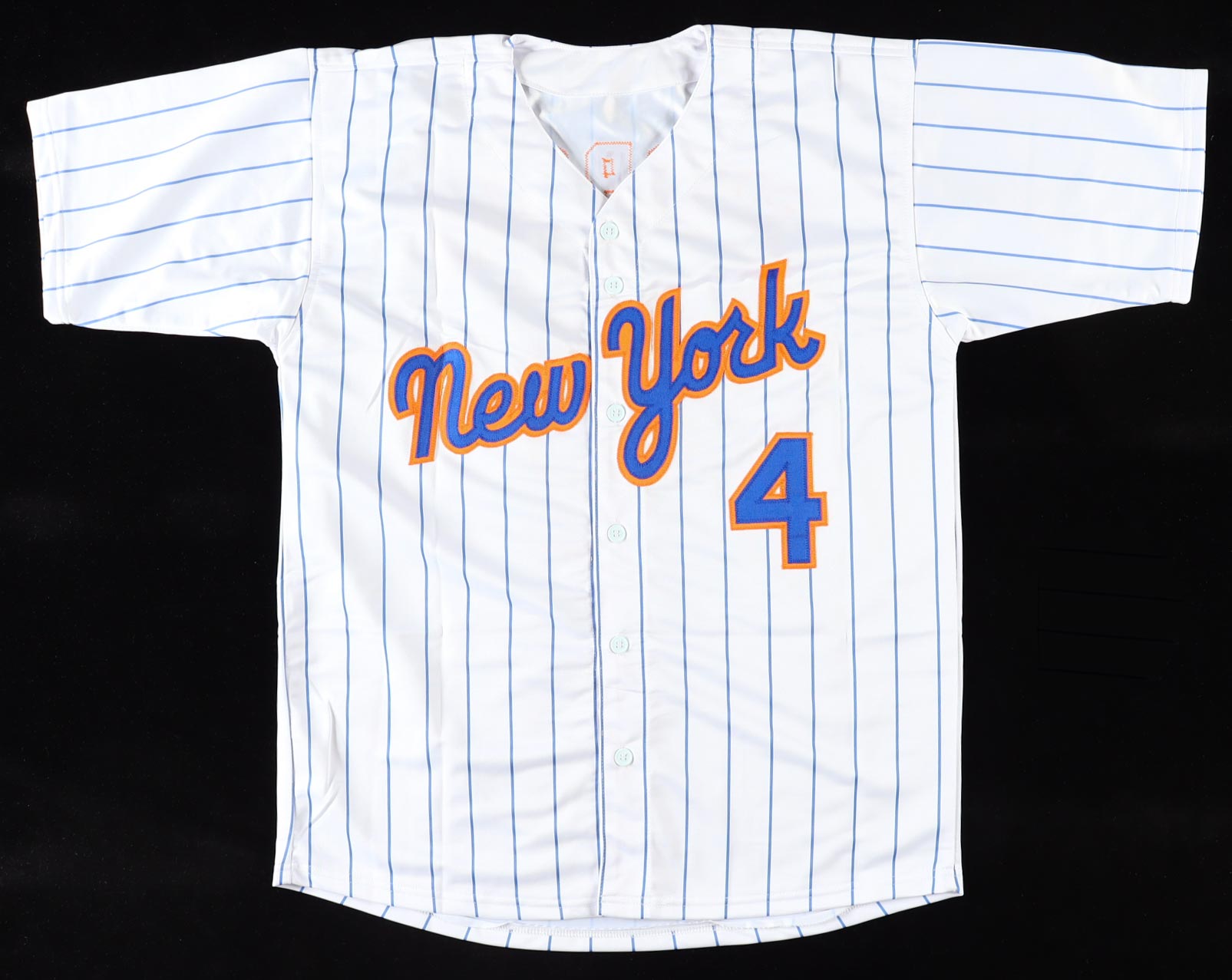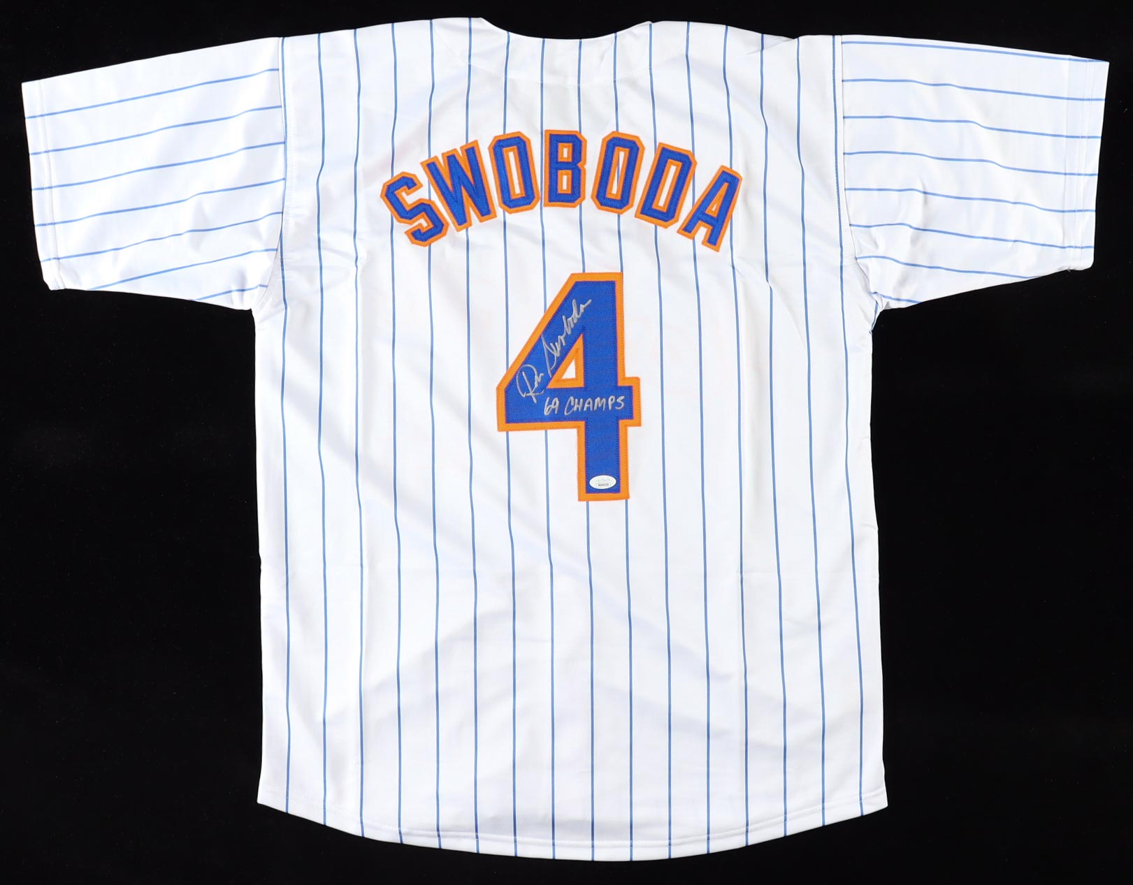 Custom jersey. Everything sewn on, size XL. Hand-signed and inscribed by Ron Swoboda.