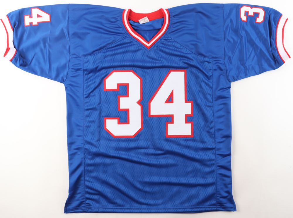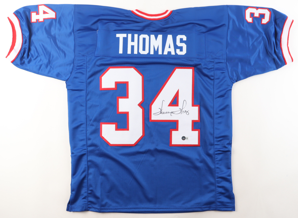 Custom jersey with everything sewn on, size XL. Hand-signed by Thurman Thomas (HOF).