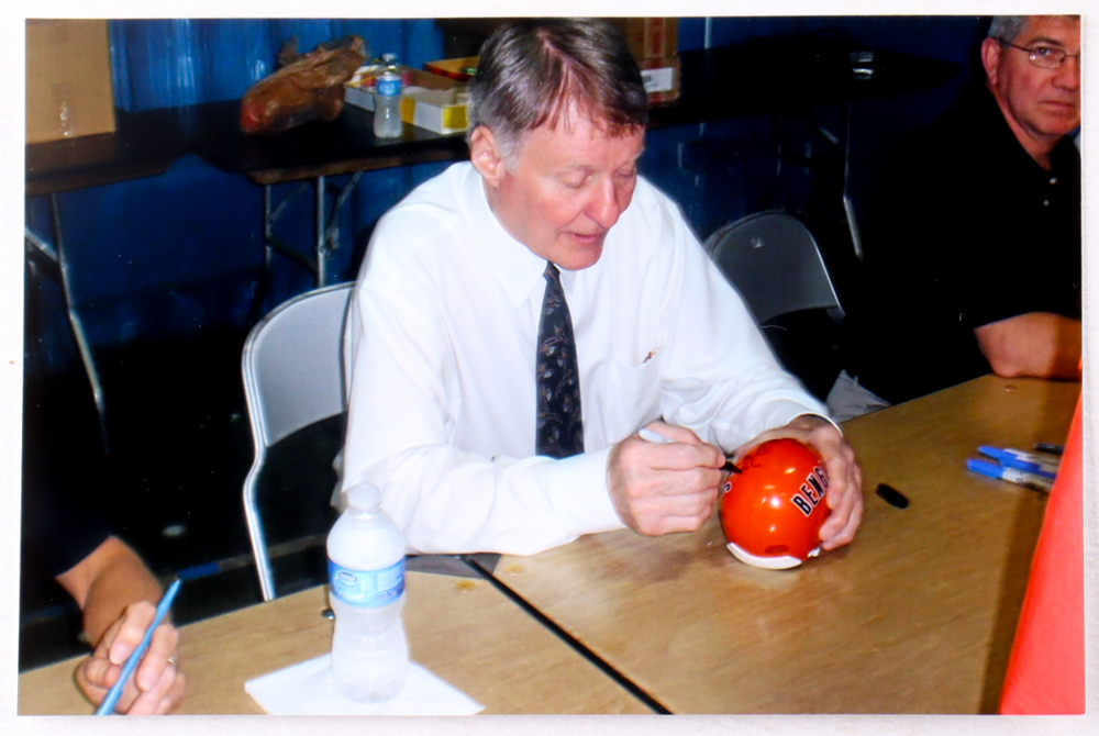 Photo measures 8" x 10" in size. Hand-signed and inscribed by Greg Cook (D. 2012, Cincinnati Bengals).