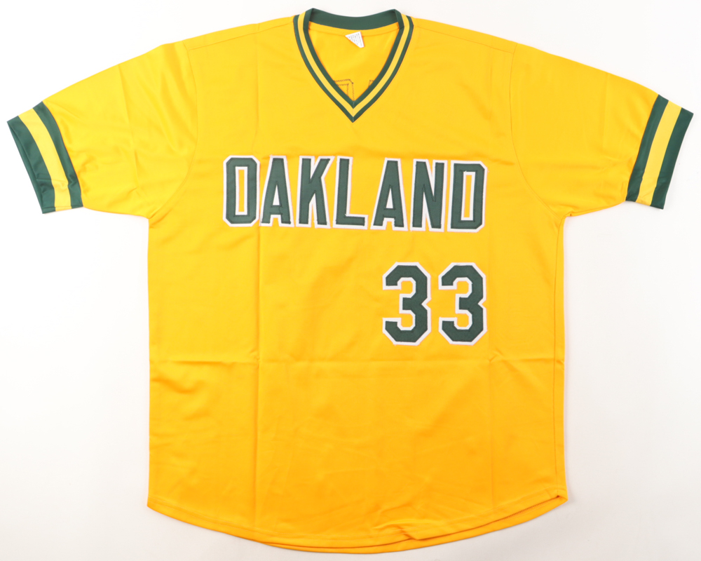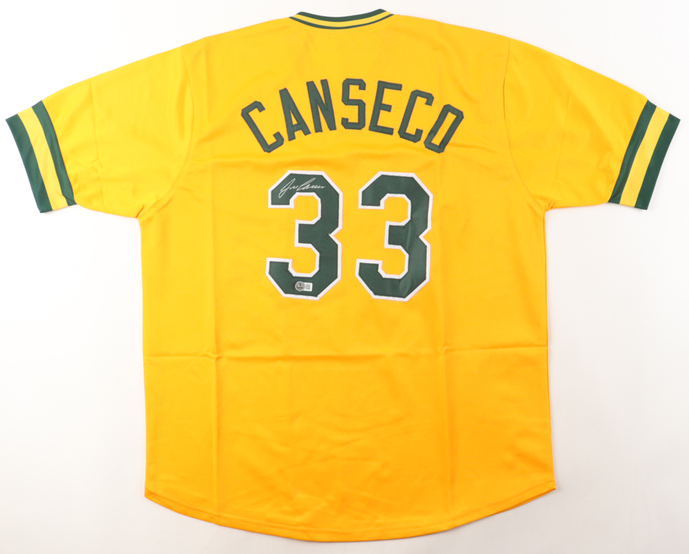 Custom jersey with everything sewn on, size XL. Hand-signed by Jose Canseco.