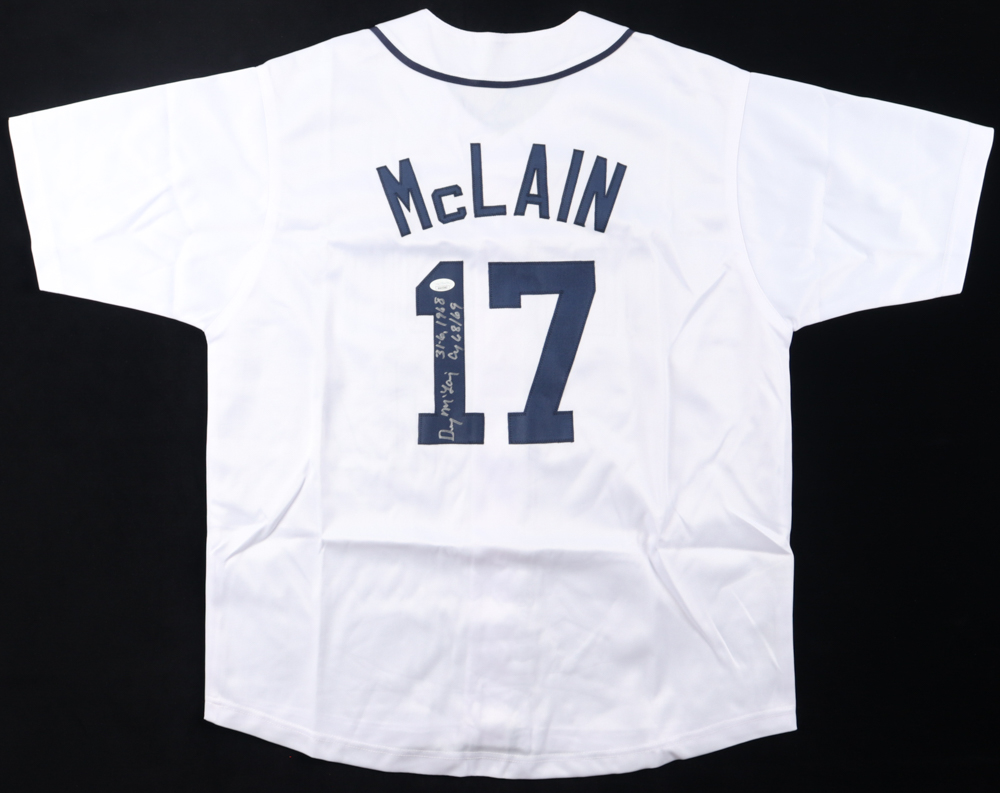 Custom jersey. Everything is sewn on, size XL. Hand-signed and inscribed by Denny McLain.