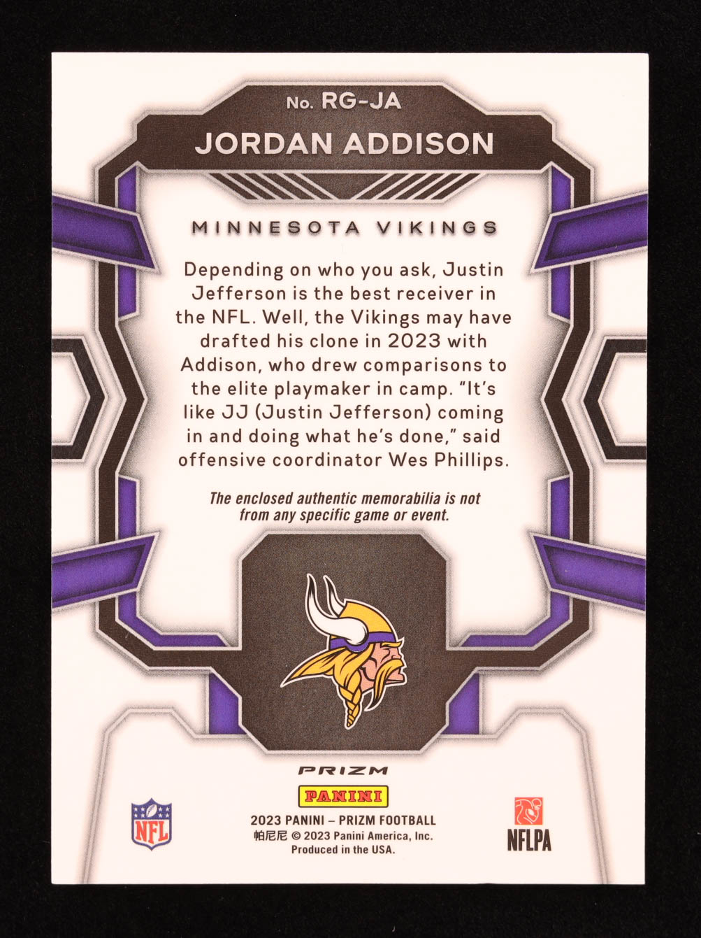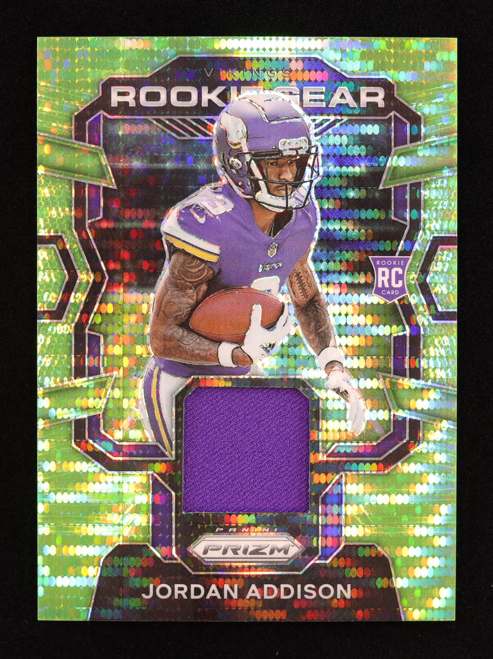 Jordan Addison 2023 Panini Prizm Rookie Gear Prizms Neon Green Pulsar #14 RC