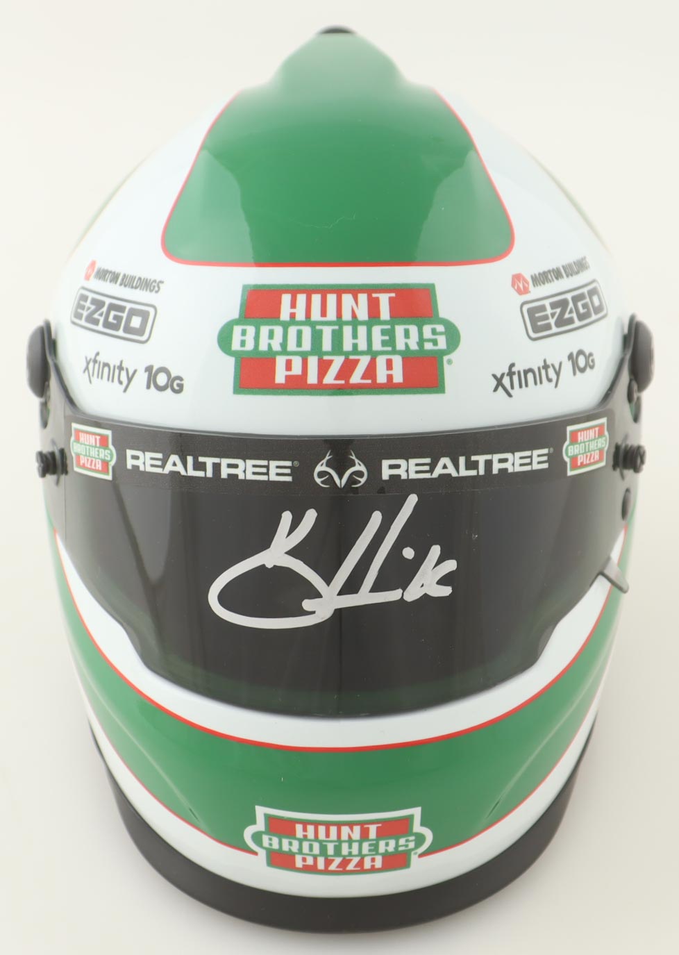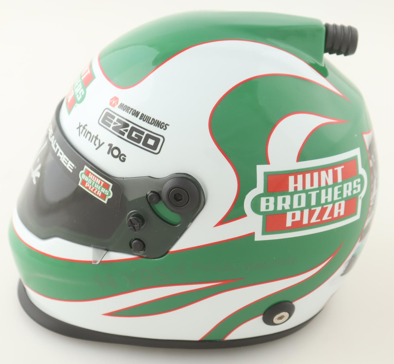 Realtree Hunt Brothers Pizza 1:2 scale mini racing helmet has been hand-signed on the visor by Kevin Harvick.