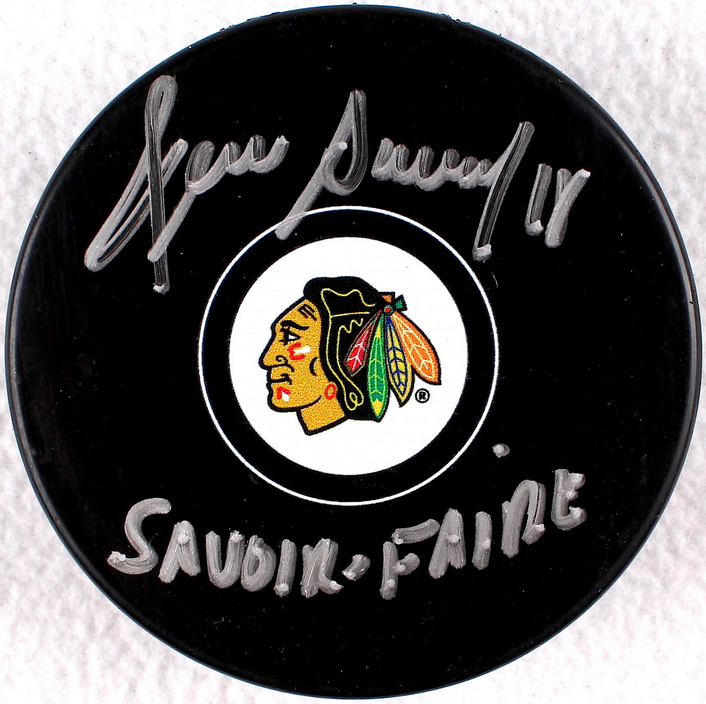 Denis Savard Signed Blackhawks Logo Hockey Puck Inscribed "Savoir-Faire" (Schwartz)