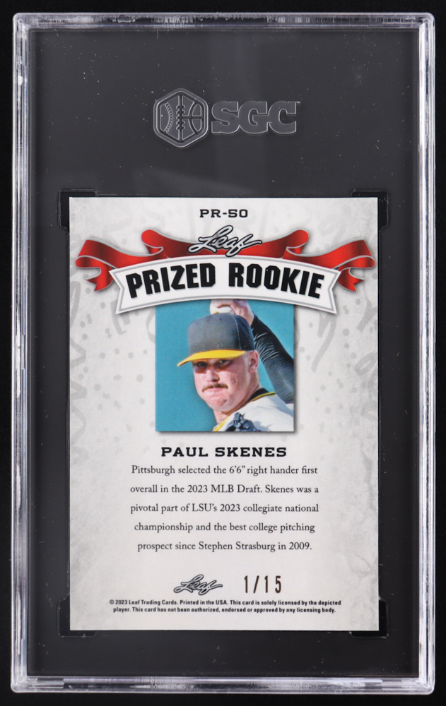 Paul Skenes 2023 Leaf Metal Special Release Prized Rookie Mojo Purple #PR50 RC #01/15 (SGC 10)