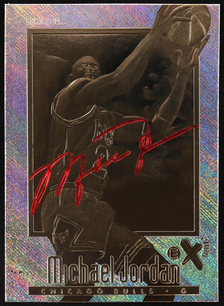 Michael Jordan 1997 SkyBox EX2000 Credentials Red Signature 23Kt Gold Prism Refractor Card #15806