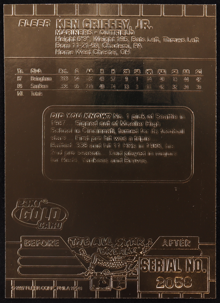 Ken Griffey Jr. 1997 Fleer Signature Series 23KT Gold Card #2058