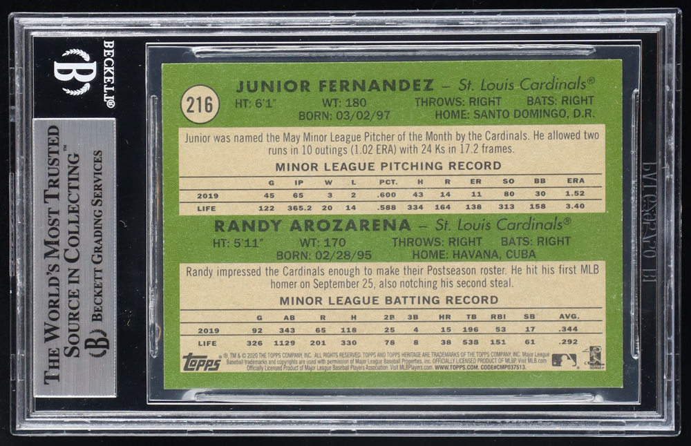 Randy Arozarena & Junior Fernandez Signed 2020 Topps Heritage #216 RC (BGS)