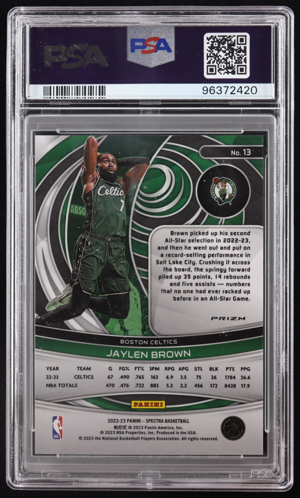 Jaylen Brown 2022-23 Panini Spectra Asia Green #13 (PSA 9)