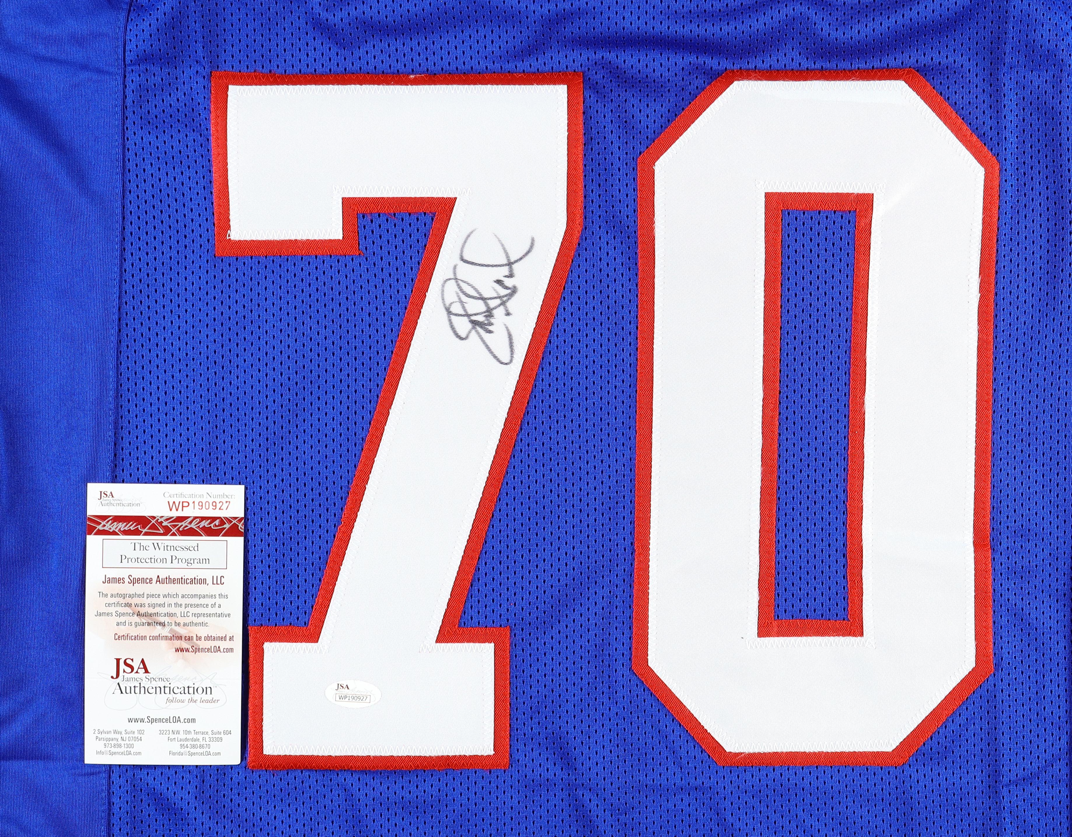 Custom jersey. Everything is sewn on, size XL. Has been hand-signed by Leonard Marshall.